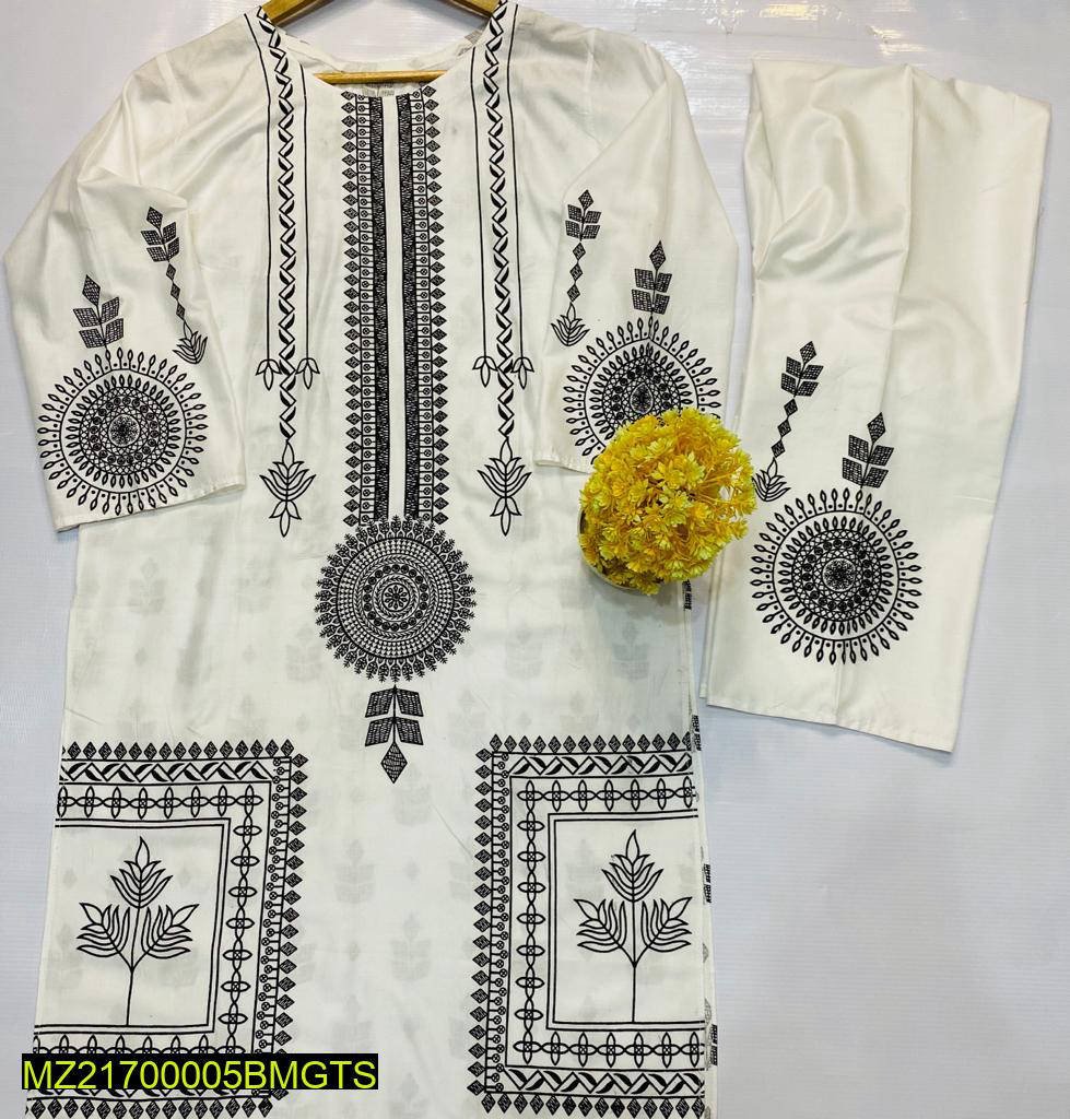2 Pcs Women’s Stitched Linen Block Printed Suit