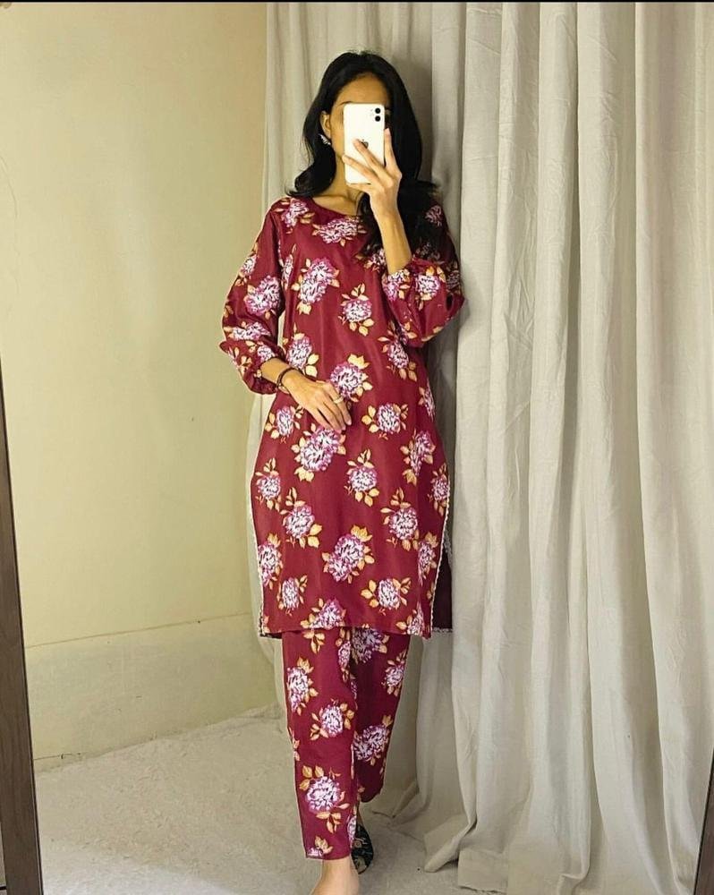 2 Pcs Women’s Stitched Linen Printed Shirt And Trouser