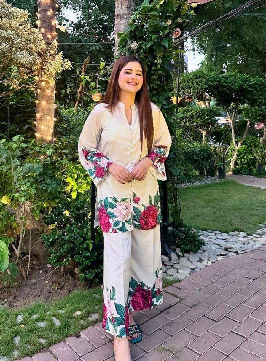 2 Pcs Women’s Stitched Printed Silk Shirt And Trouser