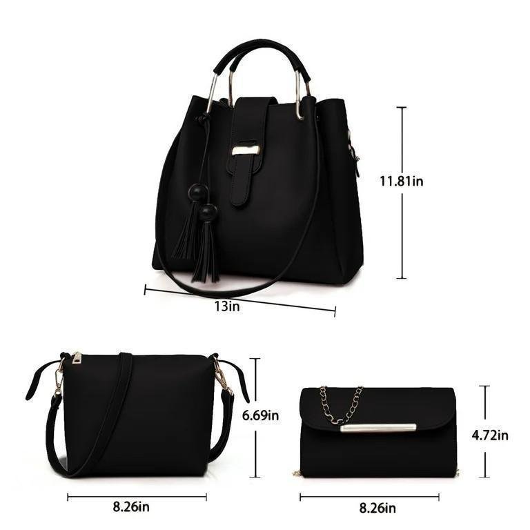 Chic Women’s PU Leather Hand Bag Set – 3 Pcs in Classic Black